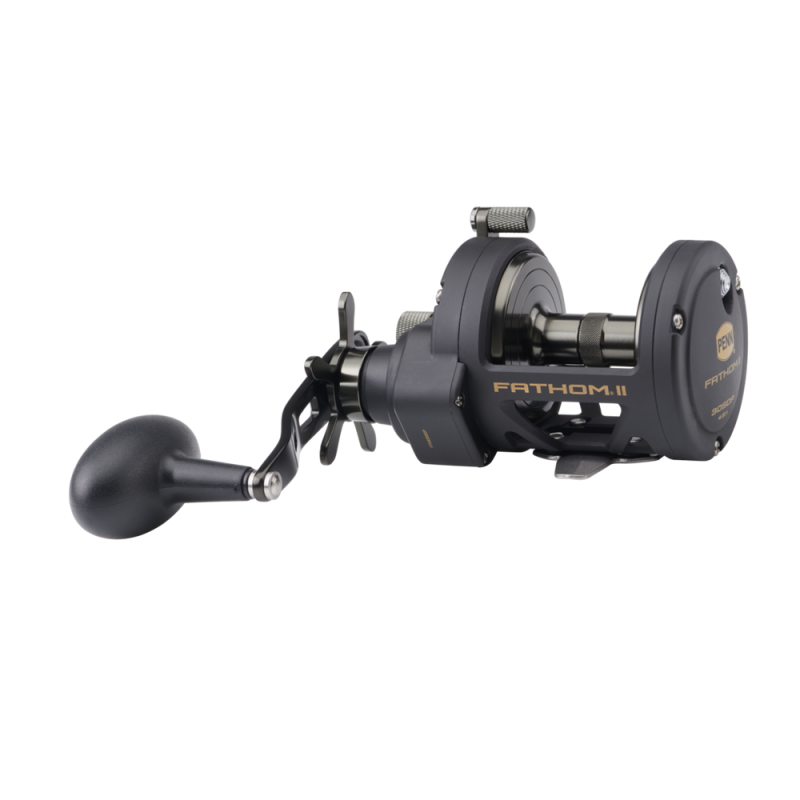 The second generation PENN® Fathom® II star clutch reel is built with a rigid metal frame and side plates, now with additional features to make it the perfect angler's friend. With our quick-access side plate, any angler can repair their gear and the HT-100 ™ clutch system quickly and efficiently. The design of the Fathom II PENN offers excellent, effortless control, while power transmission ratios (select models only) provide maximum torque for lifting fish from the deep. Magnetic casting brake available on sizes 12 and 15 only.