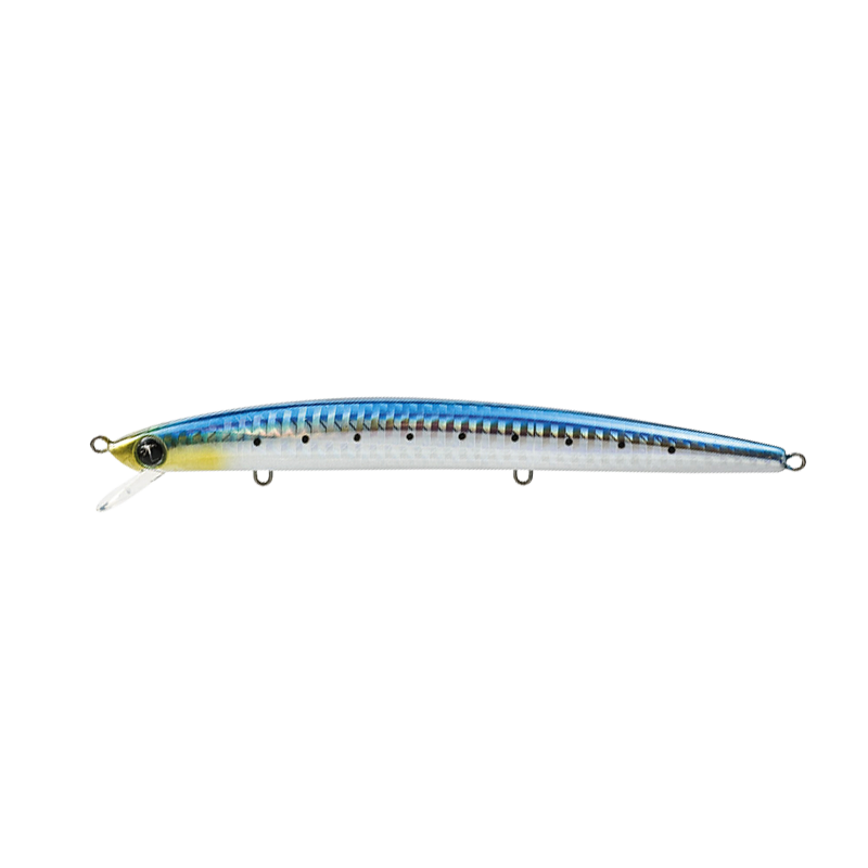 Research has led to the creation of a slight ventral curvature of the artificial, which gives it greater swimming instability and has been found to be particularly attractive to predators. A universal lure aimed primarily at bass, barracuda, greenhouse fish and many other predators, it responds very well to jerkbaits with conspicuous side swerves and also exhibits good swimming action during regular retrieves, both fast and slow. It was born to work in the 50-70cm water range and to be used from shallow locations or at least not too high above sea level. The 140 which is a slow sinking is also recommended for calm waters.