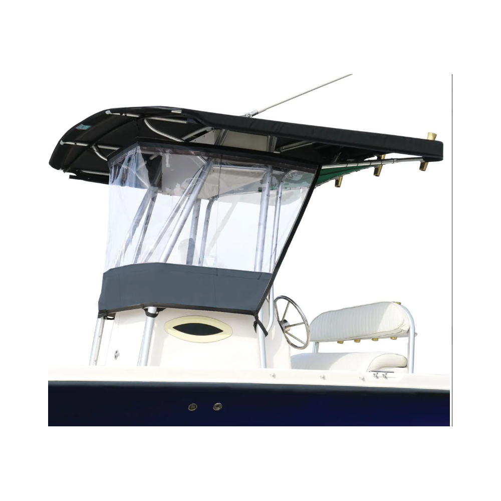 Provides excellent weather protection. Easy and secure attachment with polyester straps and buckles. Does not obstruct front or side views. Reinforced top and bottom. Quickly disassembled when not in use.