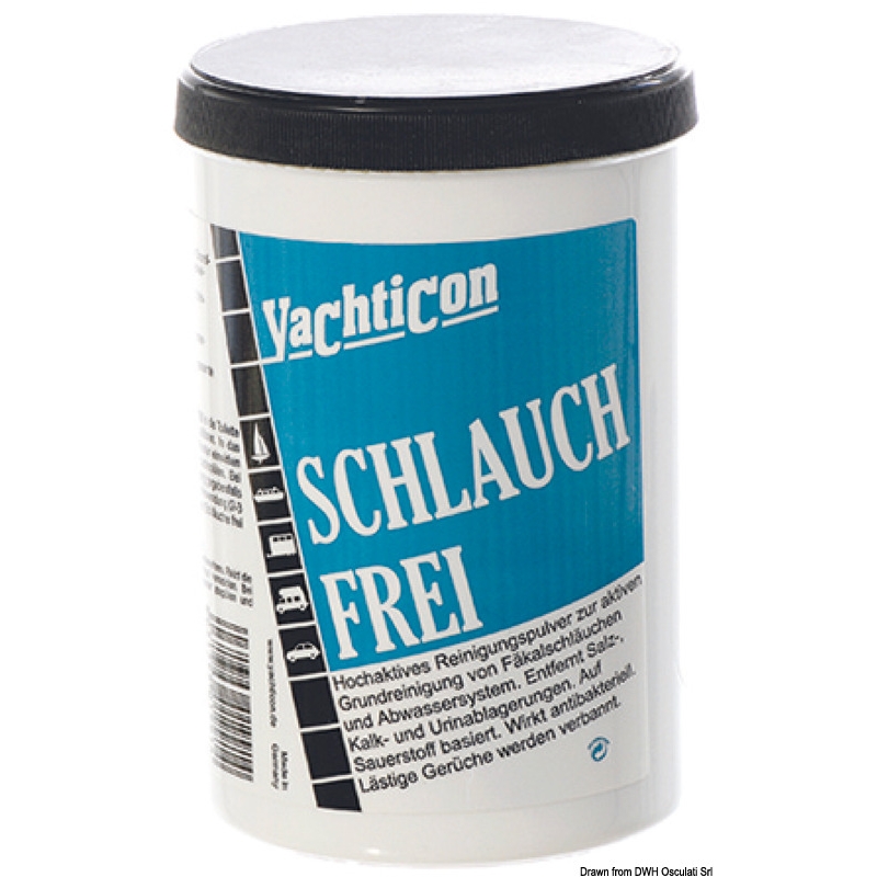 Specific product for cleaning and descaling toilet discharge hoses Anti-bacterial action that eliminates malodorous perspiration from the hoses.