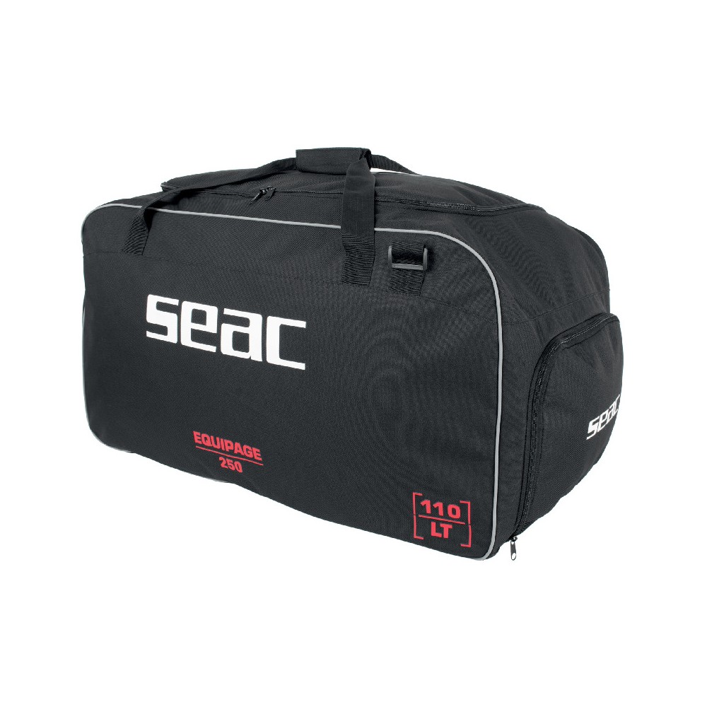 • Seac Equipage 250 is the dive bag for carrying all your equipment and accessories. It measures 75x40x35 cm (total capacity 110 liters) and is equipped with handles and adjustable shoulder strap