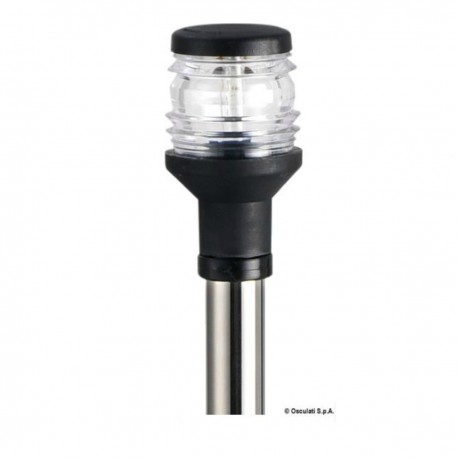 Made entirely of stainless steel. The AISI 316 stainless steel base serves both as a flagpole and a crowning light.