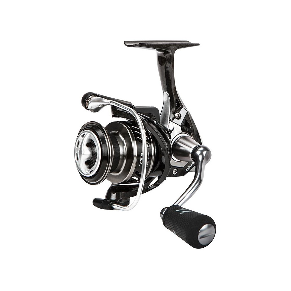 Okuma ITX Carbon spinning reels are built for maximum durability. The lightweight, stiff long-strand C-40X carbon fiber found in the body, side plates and rotor provides extra strength where it is needed most. The machined aluminum handle screws directly into the reel providing maximum safety and stability. High-performance 7HPB +1RB ball bearing system keeps the reel running smoothly in fresh and coastal water with precision machined brass sprocket. The anodized 2-tone machined aluminum spool is surrounded by Okuma's Cyclonic Flow Rotor system that increases airflow through the rotor with ports, increasing drying time and minimizing corrosion throughout the spool. Housed in the spool is the multi-disc carbon fiber drag system with hydro-block asket that keeps the water out and your clutch running smoothly. Features Lightweight and rigid C-40X carbon body, side plates and rotor Multi-disc carbon fiber drag system with Hydro Block 7HPB+1RB seal High performance greased bearings Anti-backlash roller bearing Quick-Set CFR: cyclonic flow rotor technology Machined aluminum screw in handle design TGT handle: traction Grip technology High speed on all models Precision machined brass sprocket Anodized 2-tone machined aluminum spool Solid and durable aluminum wire RESII: Computer balanced rotor equalization system