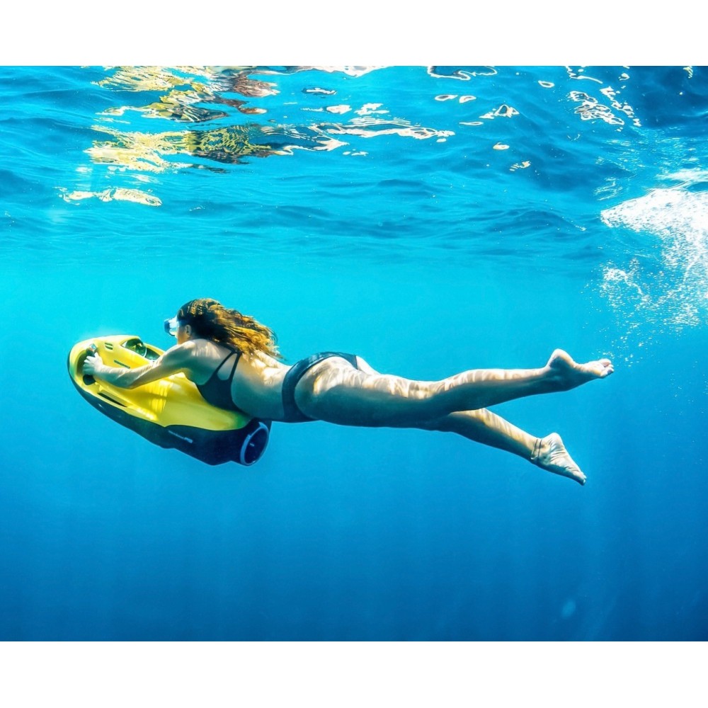 Seabob F5 stupisce per il suo peso estremamente ridotto. Con un peso complessivo di soli 29 kg, Seabob F5 porta in acqua una spinta di 480 Newton. Il sistema E-Jet Power System presente in Seabob F5 dispone di 4 fattori di potenza. Questa suddivisione gli conferisce un carattere sportivo e garantisce un estremo piacere di guida. La particolare dinamica in acqua è il risultato della combinazione tra le elevate prestazioni di guida e un rapporto potenza-peso ridotto. Grazie alle eccellenti caratteristiche di manovrabilità, Seabob F5 si presta perfettamente ad ogni utilizzo in acqua. Il mare è il suo habitat naturale. È sorprendente sia in superficie sia durante le immersioni. L‘eccezionale maneggevolezza permette al Seabob F5 di essere impiegato in maniera ideale anche in strutture acquatiche di piccole e grandi dimensioni.