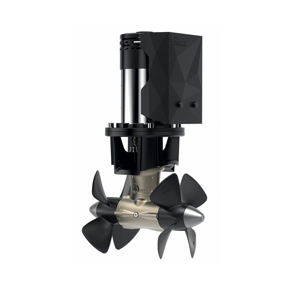 BTQ 300 - State-of-the-art materials, no electronic components are installed on the motor. All protections are managed bymicroprocessor installed on control panels. Thrust reversal with programmed delay, automatictemporized disconnection. Thermal protection against motor overheating. Propeller and protective casing for teleinvertersin sturdy composite material, bronze gearbox, zinc anode as standard independent of gearbox and easily replaced. Equipped with elastic parastrail coupling. For boats 20-26 mt, 2 propellers, Tunnel Ø mm. 300, 24V, 400A fuse, Power 10Kw, Thrust 250 Kg, Weight 48 Kg.