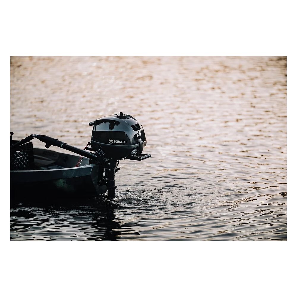 The 2.5hp Tohatsu 4-stroke is the perfect outboard for a small canoe, dinghy or sailboat. This outboard offers the largest displacement in its class, giving you maximum power in a small, compact engine. The quality of our 2.5hp outboards is guaranteed with a 7-year warranty.