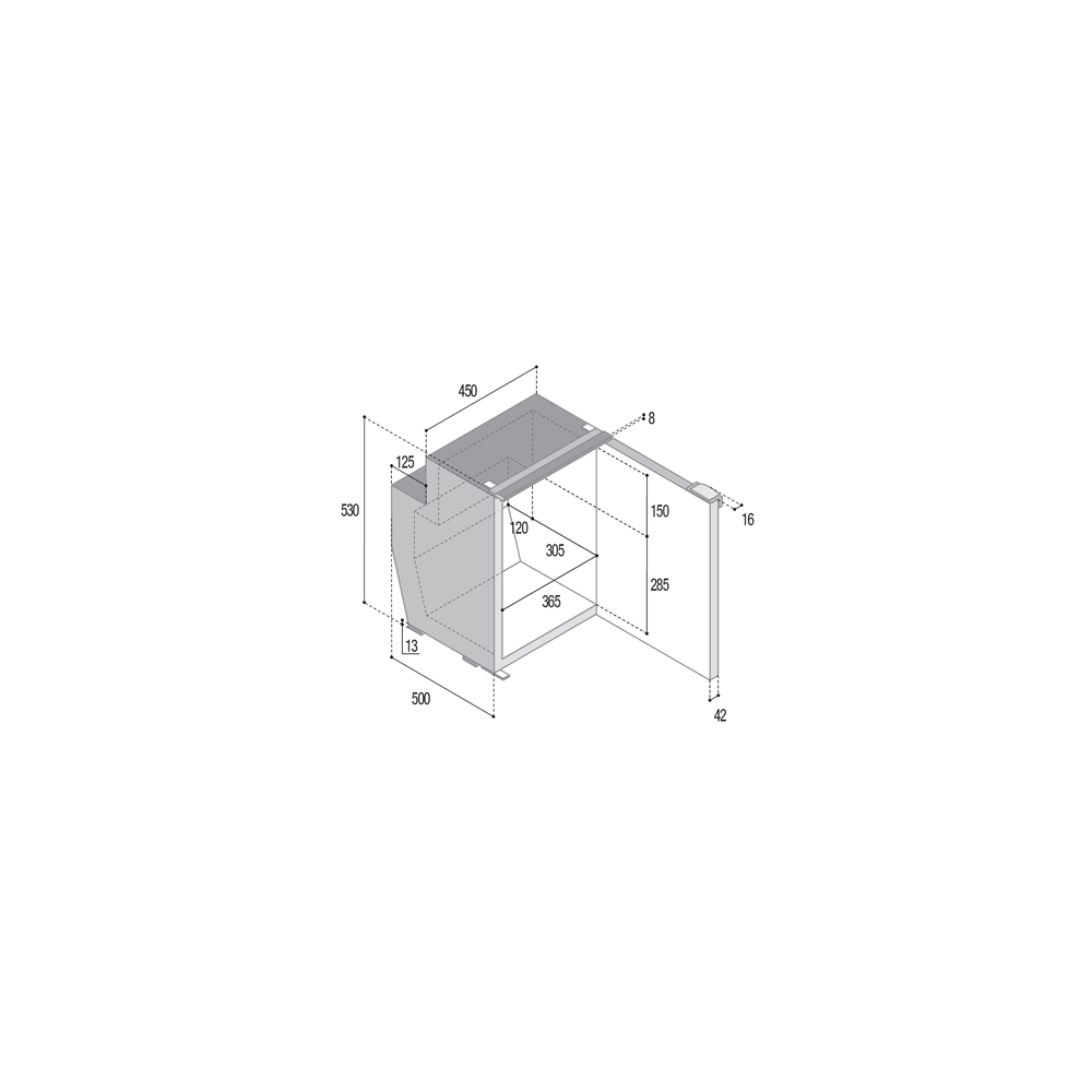 The C62i CHR refrigerator-freezer from the Chromelock series is an optimal solution, as it has a total capacity of 62 liters. The refrigeration unit is positioned internally. Among its main features, we find the black panelized door with snap closure, designed to prevent accidental opening. In addition, the door features an innovative "vent position" system built into the handle, which allows partial opening during periods of inactivity. This feature not only prevents the formation of mold and unwanted odors but also helps ensure better preservation of your food.