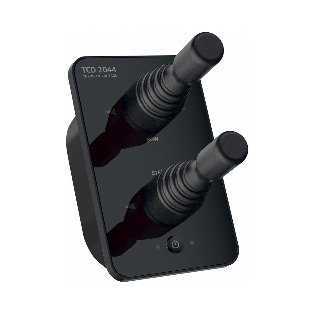 TCD 2044 control panel for bow and stern thrusters. Allows you to control two bow and stern thrusters via two independent joysticks. Dimensions: 78x131 mm. Power supply: 12/24V. Does not replace THCs.