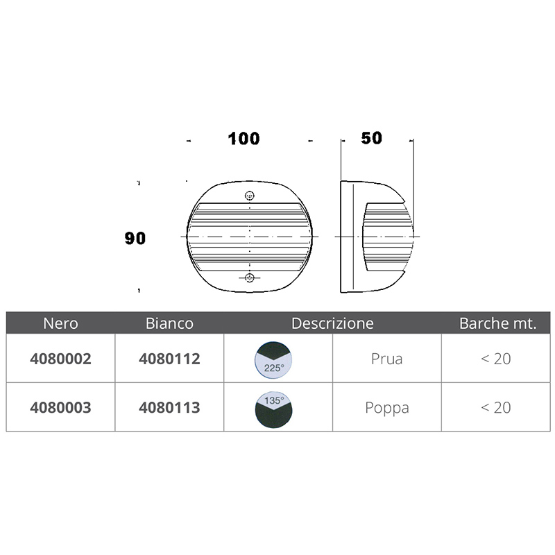 RINa-hyväksytyt navigointivalot UV-suojatusta polykarbonaatista, IP56-suojausluokka, mukana RINa-hyväksyntätodistus ja 12 V:n polttimo.