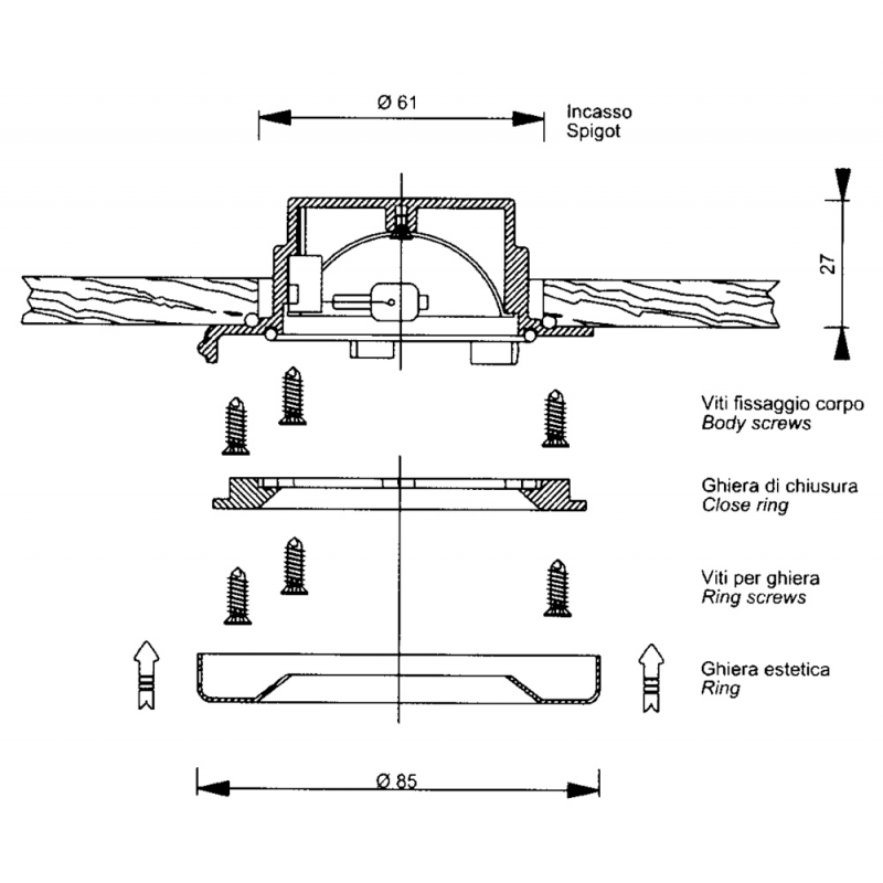 Acquarius vedenpitävä IP65 upotettava kohdevalaisin, teknopolymeerirunko, karkaistu ja satiinilasi, näkyvä ulkorengas AISI 316 ruostumatonta terästä. 3 kiinnitysreikää. Polttimo (ei sisälly toimitukseen) G4-kannalle, tuotenumero: 4090318/320