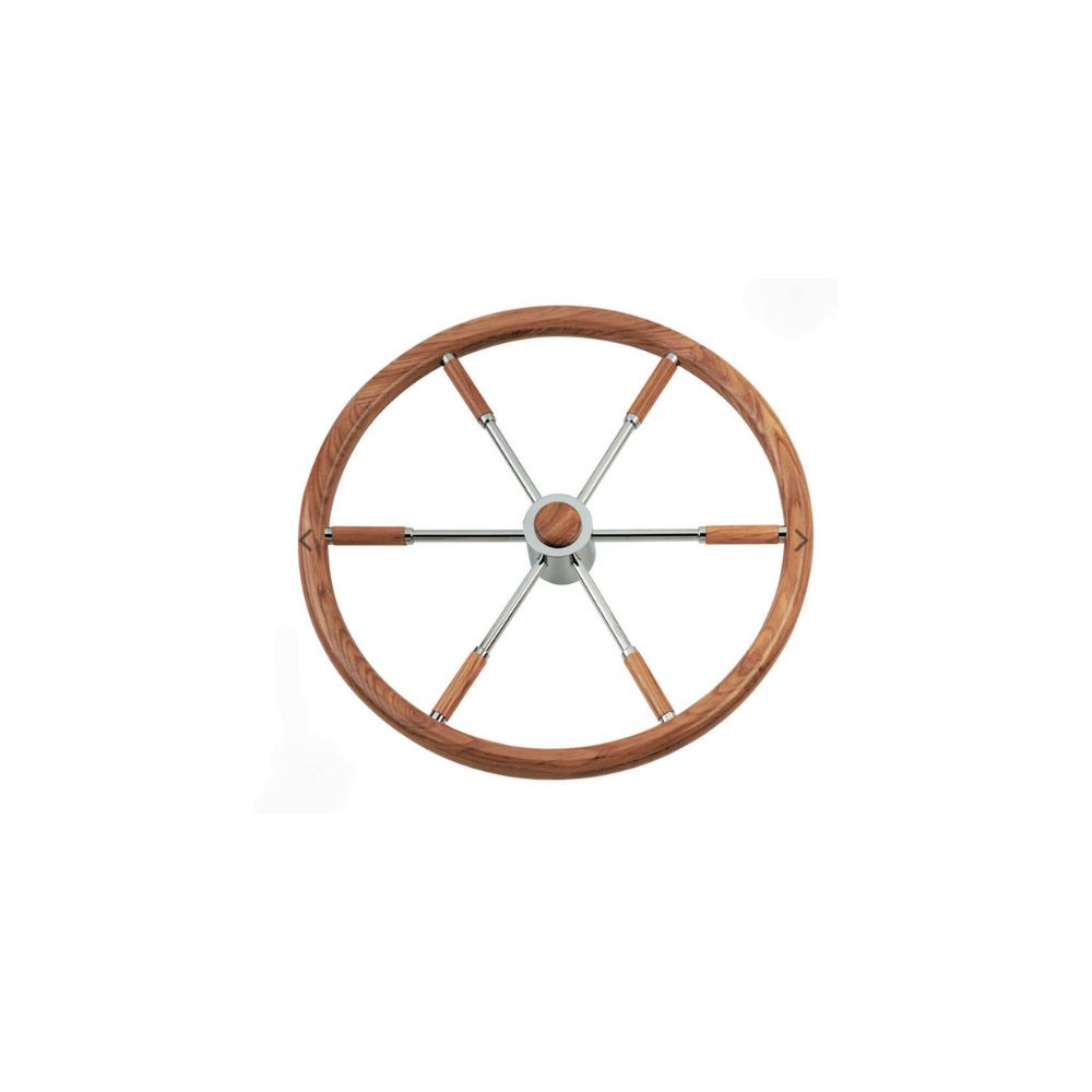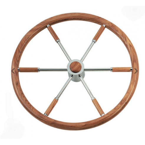 Ohjauspyörä, jonka kahva ja pinnat on päällystetty tiikkipuulla
