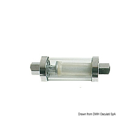 Kromattu zamak-runko + läpinäkyvä, särkymätön lasi . Näet polttoaineen ja suodattimen kyllästymisen. Irrotettava ja vaihdettava täyttösuodatin. Varustettu kolmella 6/8/10 mm:n letkuliittimellä, jotka sopivat mihin tahansa putkeen.