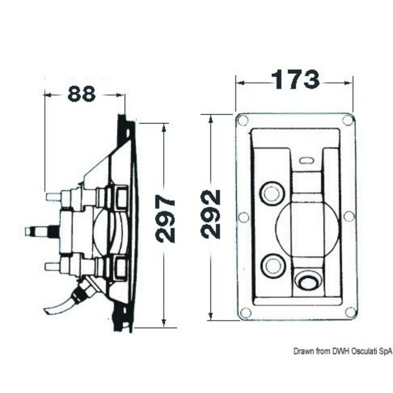 Lämpimän ja kylmän veden ulostulo.