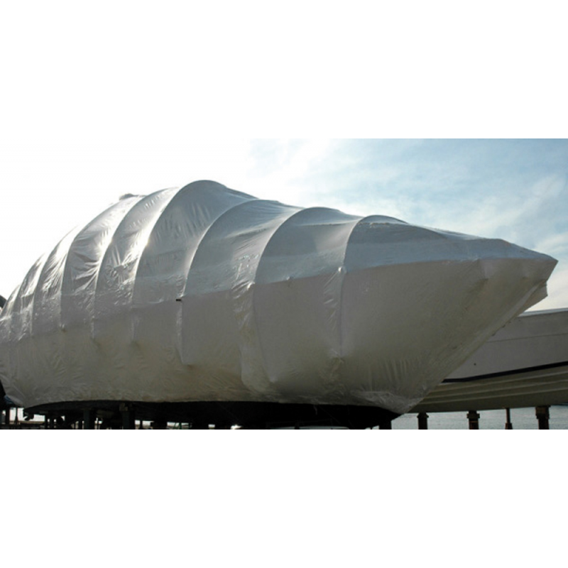 Valkoinen kutistekalvo, joka on valmistettu ensiluokkaisesta polyeteenistä ja jossa on valkoinen UV-stabiloitu lisäaine. Se heijastaa auringonvaloa, mikä edistää säilyvyyttä ja pitää lämpötilat alhaisina. Ihanteellinen minkä tahansa aluksen ulkosäilytykseen. Sitä voidaan käyttää myös alusten pakkaamiseen kuorma-autolla tai laivalla kuljetettavaksi.