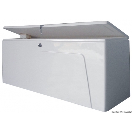 Valmistettu valkoisesta lasikuidusta, saranat ruostumattomasta teräksestä ja kromattu messinkinen vipulukitus.