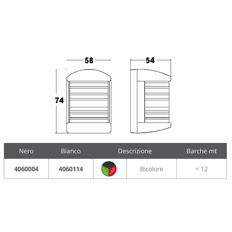 RINa-goedgekeurde navigatieverlichting van UV-bestendig polycarbonaat, beschermingsklasse IP56, compleet met RINa-goedkeuringscertificaat en 12V-gloeilamp.