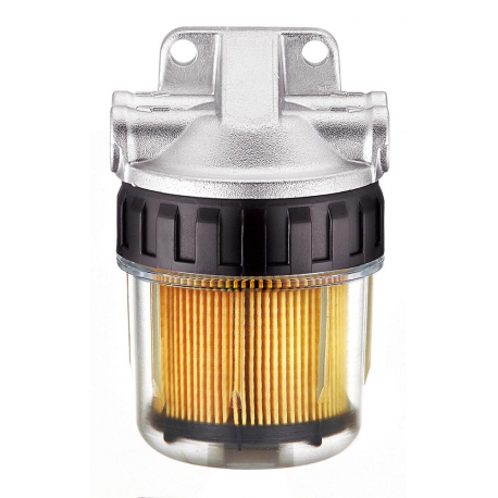 Universeel brandstoffilter met geanodiseerde lichtmetalen steun.
