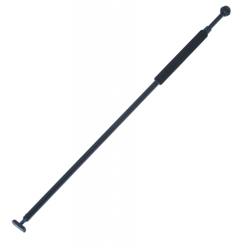Telescopische stuurknuppelverlenging van zwart geanodiseerd lichtmetaal met elastomeer gewricht en golfgreep.