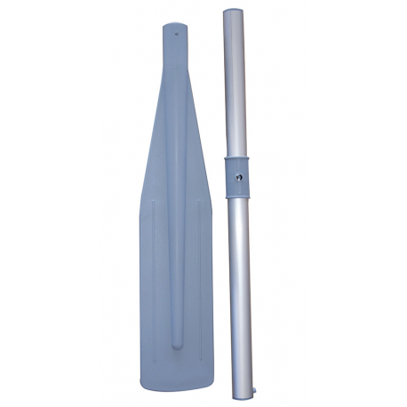 Geanodiseerde lichtmetalen roeispaan, Ø 35 mm, gespleten op het grijze blad. Met gat in de huls voor roeidollen met pen.