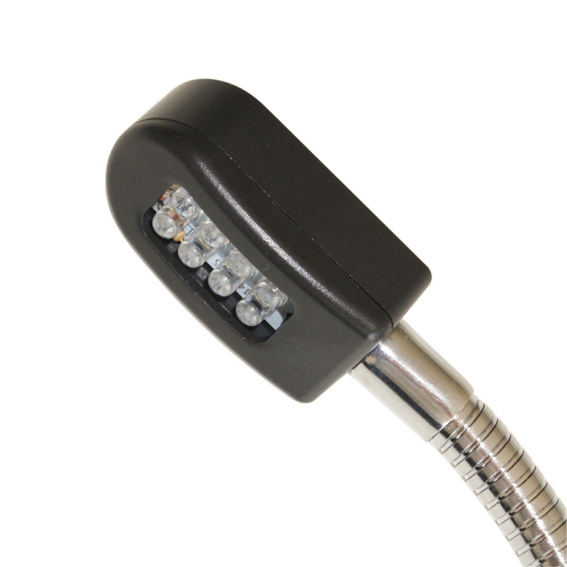 Kaartlezer met 8 LED's, kunststof voet met schakelaar, flexibele arm. 12V-voeding. 1 bevestigingsgat.