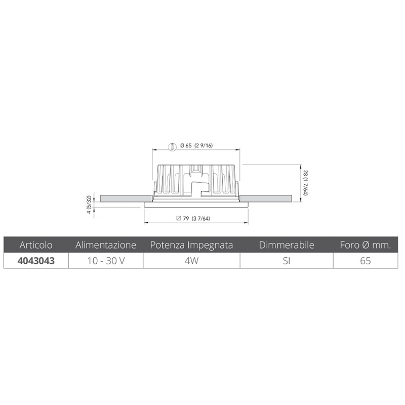 IP 66 waterdichte spot, POWER LED (215 lumen) met zeer hoge helderheid, natuurlijk wit licht, met vierkant frame van gepolijst AISI 316 roestvrij staal. Polariteitsgevoelig.
