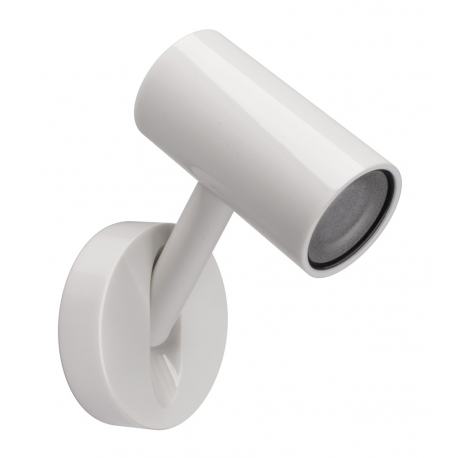 Richtbare binnenspot van wit composietmateriaal, voorzien van schakelaar. Warmwit licht (140 lumen). Wandmontage met schroeven. Polariteitsgevoelig.