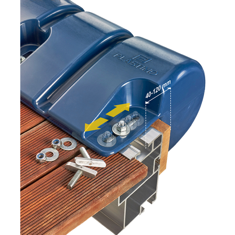 UV-bestendige witte PVC-fender. Eenvoudig te installeren en direct te bevestigen aan de randen van steigers of catways, waardoor onbedoelde schade aan de constructie of het schip door verkeerde manoeuvres of zware zeegang wordt voorkomen. Maximale bandenspanning: 0,1 bar (1,45 psi).