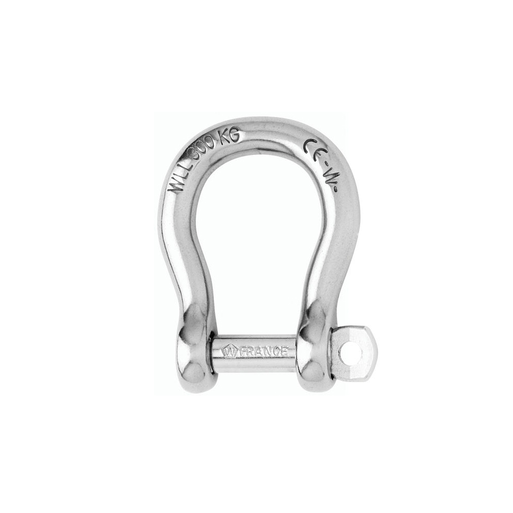 Zitherbeugel van roestvrij AISI 316L-staal met onverliesbare stift en gecertificeerde werklasten (WL) en breeklasten (BL).