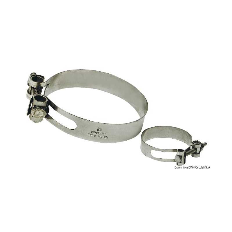 Ze zijn gemaakt van roestvrij staal AISI 316 , ontworpen voor intensief gebruik en zijn daarom bijzonder geschikt voor leidingen met een kern (uitlaatgassen, toiletten, koelleidingen, brandstoftoevoerleidingen, enz.).