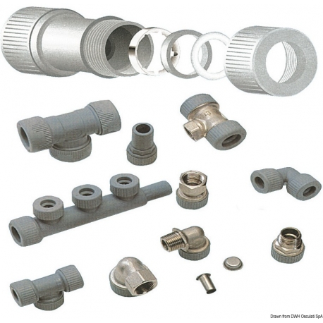 Directe klikmontage. Schuif de buis eenvoudig op de fitting voor montage. De fitting is herbruikbaar ; vervang simpelweg de borgring. De fittingen zijn gemaakt van polyamide en de buizen van polyethyleen . RINA-goedgekeurde fittingen met certificaat MAC/119897/1TO/98.