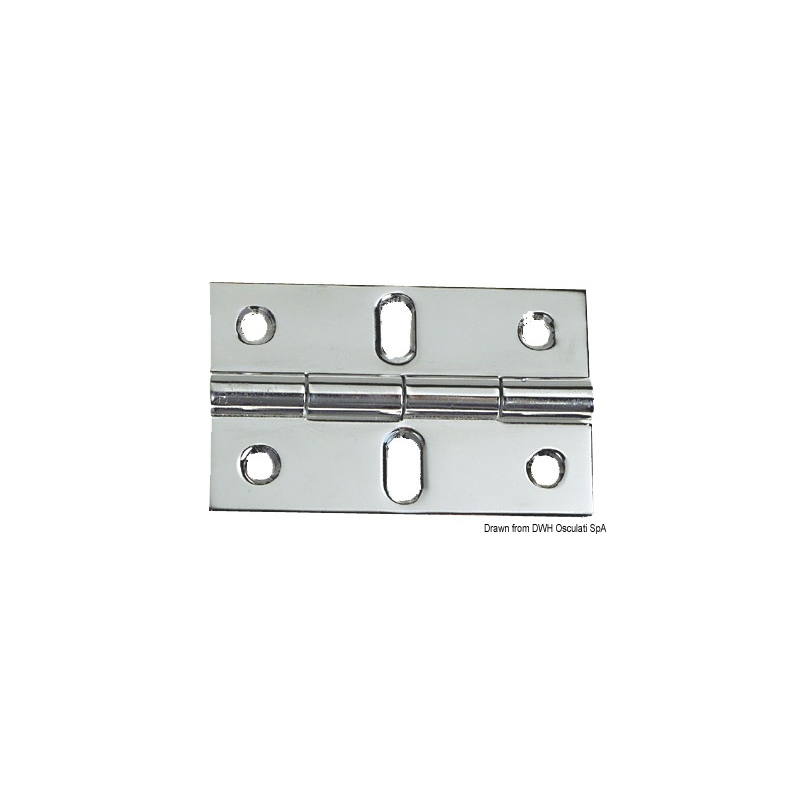 Gepolijst roestvrijstalen scharnier, half verzonken. Voorzien van ovale centergaten voor perfecte centrering. Ontworpen voor lockerscharnieren. Trillingsdempend door een geremde centrale as.