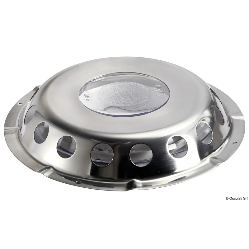 Gemaakt van roestvrij staal . Het laat lucht door en is toch perfect waterdicht. Afmetingen buitendiameter 230 mm, hoogte 35 mm. Behuizingsgat 97mm.