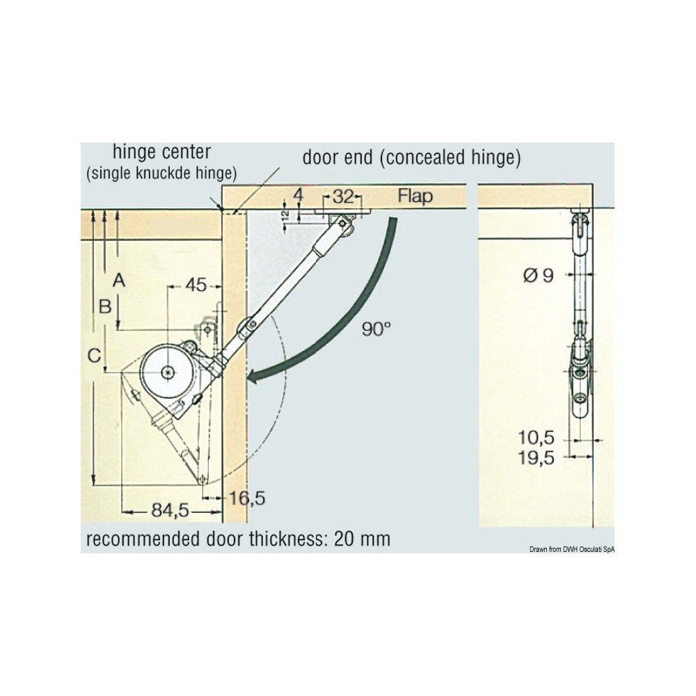 Zodra de deur omhoog gaat, houdt de arm deze op zijn plaats; bij het sluiten dempt de arm de neerwaartse beweging van de deur totdat deze volledig stopt. Kleur: wit. Wordt geleverd met montageplaat. Berekening van het koppel. Eén arm : deurlengte (cm) x 1/2 x deurgewicht (kg).