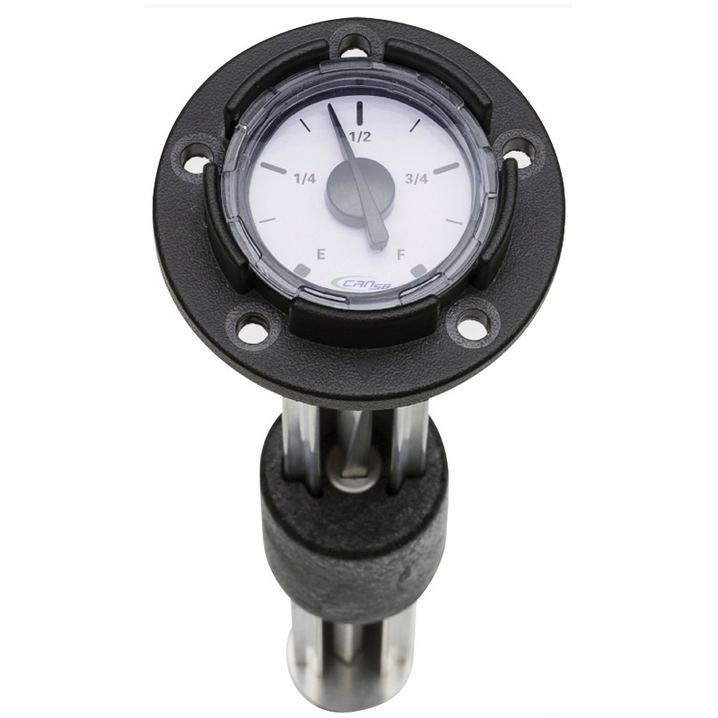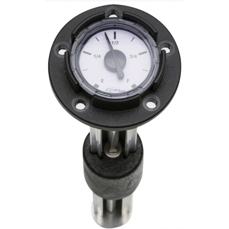 Mechanische brandstofmeter, compleet met pakking en bevestigingsschroeven. Buitendiameter flens: 66,5 mm.