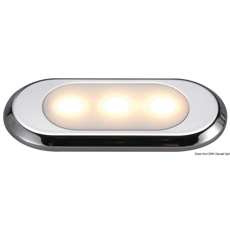 Montage zonder uitsparing, 5 mm dik. Waterdichte behuizing van technopolymeer, met gepolijste roestvrijstalen afwerkring.