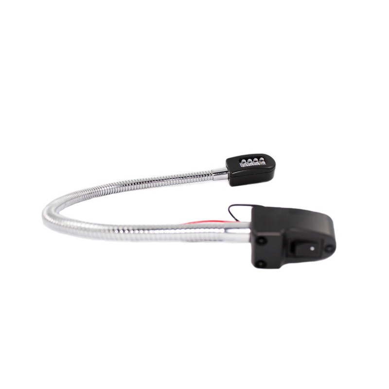 Kaart- en leeslamp, voorzien van een flexibele arm.