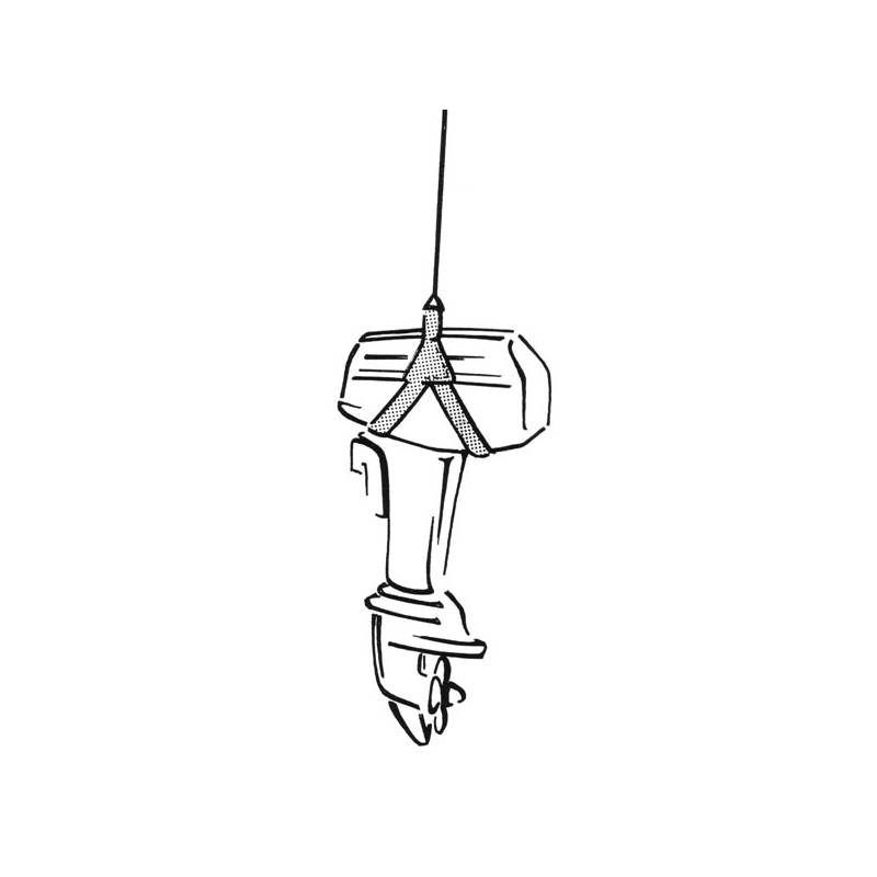 Universeel harnas voor alle buitenboordmotoren tot 15 pk , inclusief 4-taktmodellen . Onmisbaar voor het verplaatsen van de buitenboordmotor van de praam naar de achtersteven en vice versa.