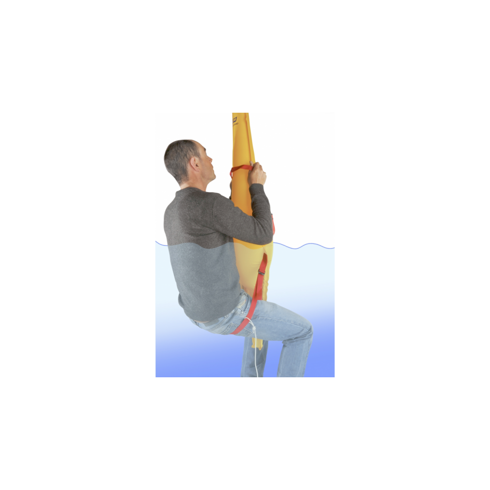 Opblaasbare IOR-stok van geel polyurethaan gecoat nylon, zorgt voor de identificatie van een overboord geslagen persoon door 198 cm boven water te komen en biedt een drijfvermogen van 150 N. De stok is compleet met een zitplaats met een verstelbare overboordriem, een handgreep, een automatisch brandende lamp met een brandduur van 8 uur, een rood-gele vlag, retroreflecterende tape, een fluitje, een vaste ballast en een drijvend anker. ABS-container. Afmetingen: Ø 13 x 49 cm. Gewicht: 3,8 kg. Geschikt voor montage op een buis van Ø 22/25 mm.