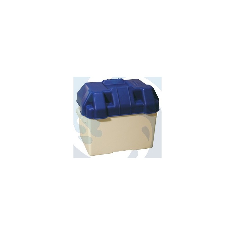Batterijbehuizing van kunststof, met riempjes en jumpers voor bevestiging.
