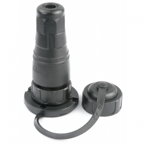 Connector met Hypertac vergulde contacten voor een hoge stroombelastbaarheid en hoge elektrische continuïteit. IP67 waterdicht.