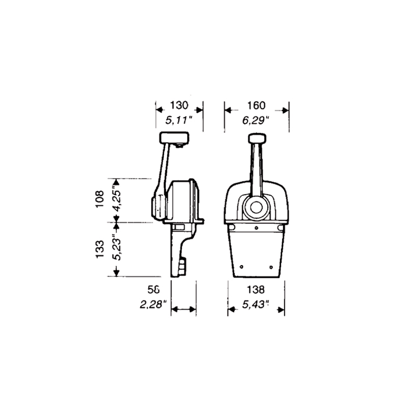 Ze zijn gemaakt van gegoten aluminium, gelakt of verchroomd. Door de hendel uit te trekken, wordt de versnellingsbak ontkoppeld tijdens het opwarmen van de motor. Met de X12-veiligheidsschakelaar (optioneel) kan de motor alleen worden gestart met de versnellingsbak in neutraal. Modellen met trim hebben een schakelaar in de hendel waarmee de pootlift van buitenboordmotoren en hekaandrijvingen kan worden aangepast. Ze maken gebruik van de C2-C8-C14 en Mach 0-14 motorbedieningskabels. Voor de C5-C16 en Mach 5 kabels is de K35-aanpassingskit vereist.