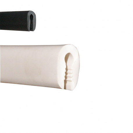 Myk PVC-avslutningsprofil uten metallforsterkning for avslutning av kanter på glassfiber, tre, metall, glass eller andre materialer med en tykkelse på 3 mm til 5 mm. Kan varmmonteres. Rull på ca. 20 m. Kan varmmonteres.