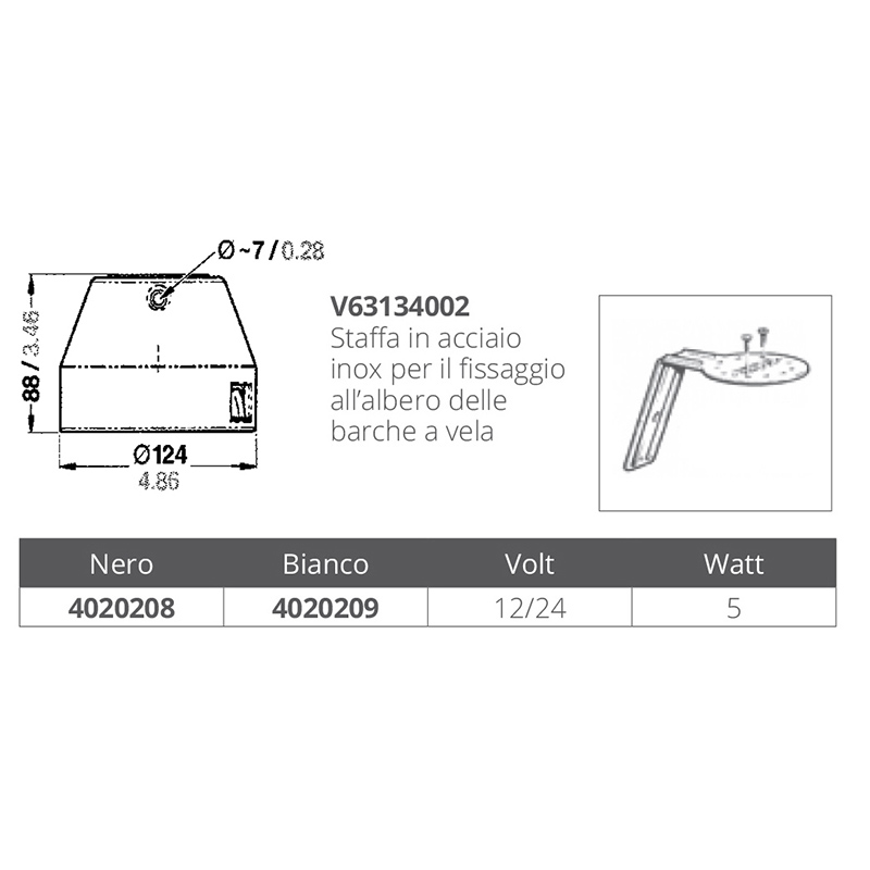 Led floodlight for deck Hamburgin polycarbonate shock resistant and UV rays, watertight ip 67, equipped with 3 LEDs (5w) with prismatic lenses for greater brightness and brilliance. 12-24v voltage with protection for the possible reversal of polarity, mounting on tree.