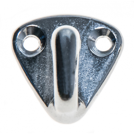Krok i rustfritt stål Aisi 316. Mål mm. L=25, B=27, H=19, E=5,5.