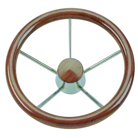 Ratt med teakgrep, nav og eiker i rustfritt stål, universalkonus