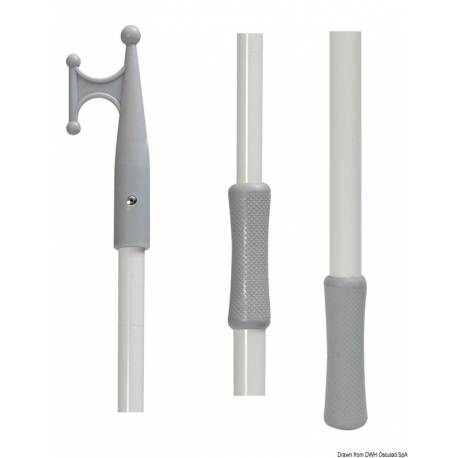 Grå nylonkrok, epoksybelagt aluminiumshåndtak og dobbelt grep.