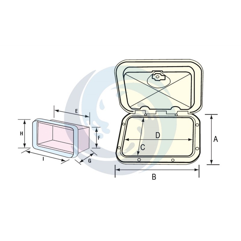 ASA-container med dør, hvit farge, med lås. For VHF, CB, radio,