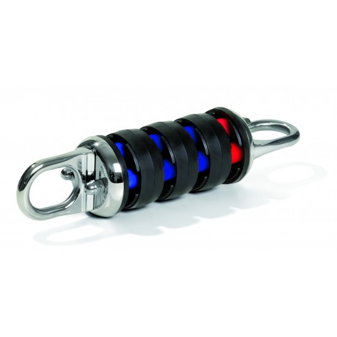 Fortøyningsstøtdempere med adelastometer-drift. De kjennetegnes av sine høyteknologiske komponenter som HR rustfritt stål (17/4PH) og spesielle elastomerer. Endeslagskomponentene og avstandsstykkene er laget av spesiell nylon med UV-absorber. HR rustfritt stål motstand 120-140 kg./mm2. Endeslagskomponenter og avstandsstykker er laget av spesiell UV-absorberende nylon. Elastomerer med eksepsjonelle egenskaper fra -40 °C til +120 °C og med motstand på over 400 000 endeslagsykluser. Fjær Ø 100 mm, lengde 440 mm, forlengelse 90 mm, for båter opptil 35/45 tonn, bruddlast 27 000 kg, arbeidslast 14 000 kg, fjærvekt 3,4 kg.