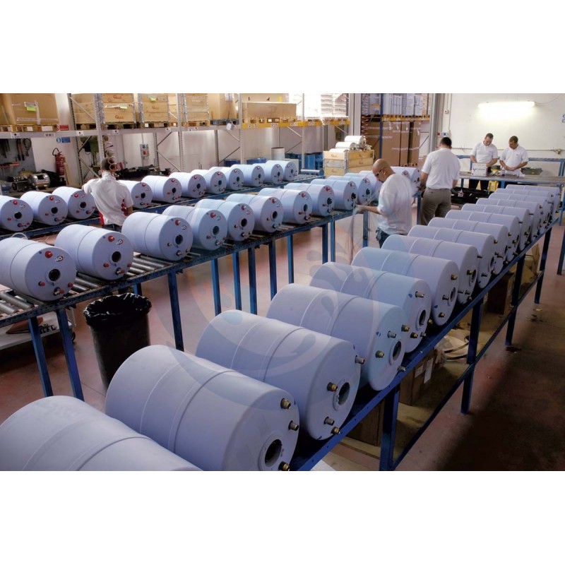 Tanken er laget av rustfritt stål Aisi 316 og sveiset i en beskyttende argongassmosfære, derfor spesielt motstandsdyktig mot korrosive stoffer, og den elektriske motstanden er Incoloy®.