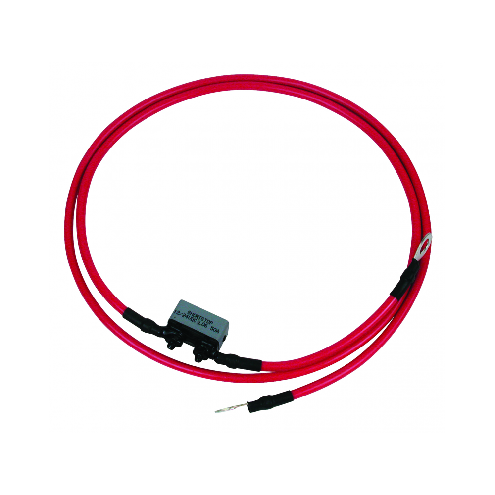 Batterikabel med 8 mm kabelsko og en 50A manuell tilbakestillingsbryter. Brukes ofte til å legge til et andre eller tredje batteri i en 24V- eller 36V-installasjon. Lengde: 1,2 m
